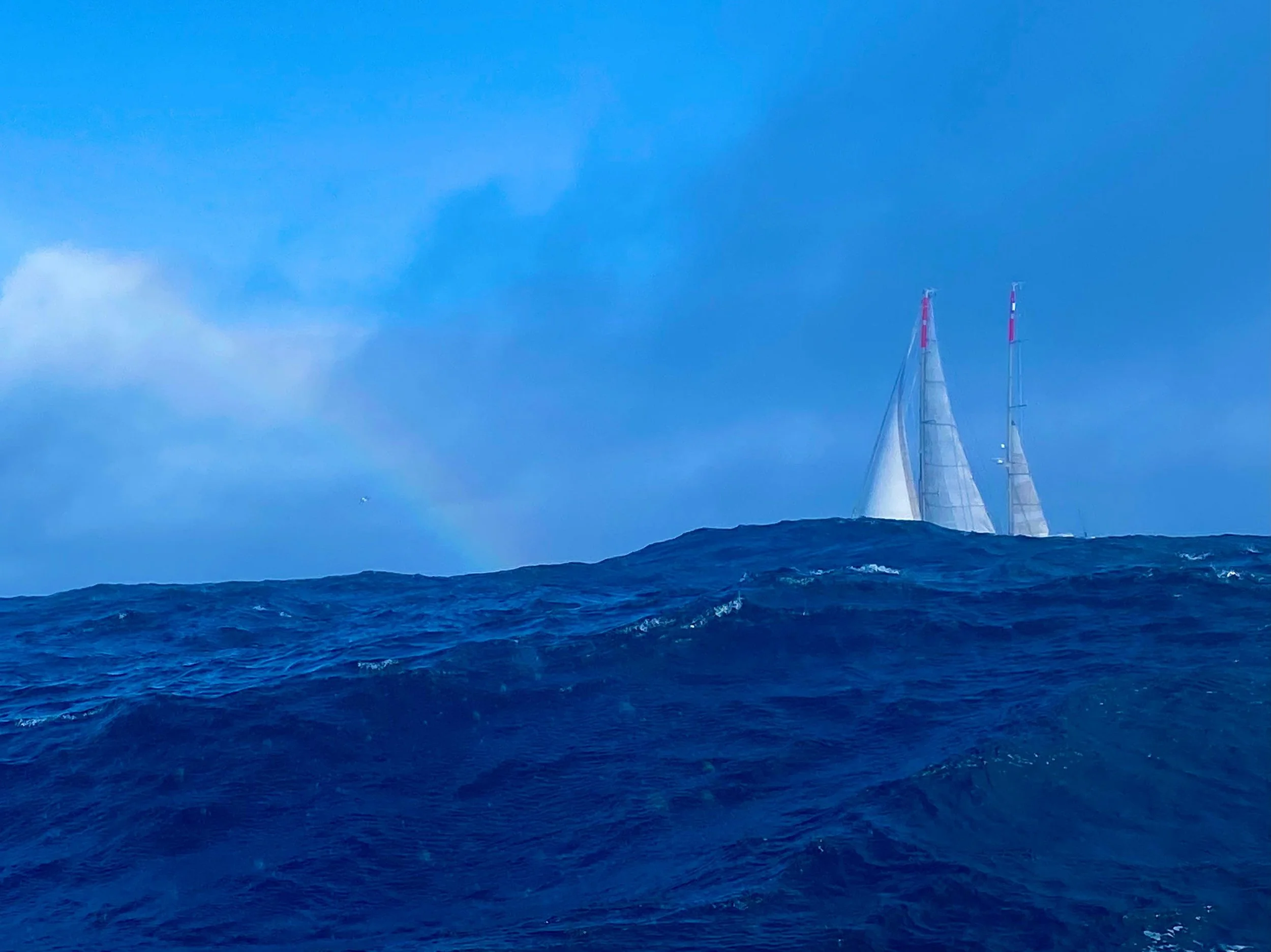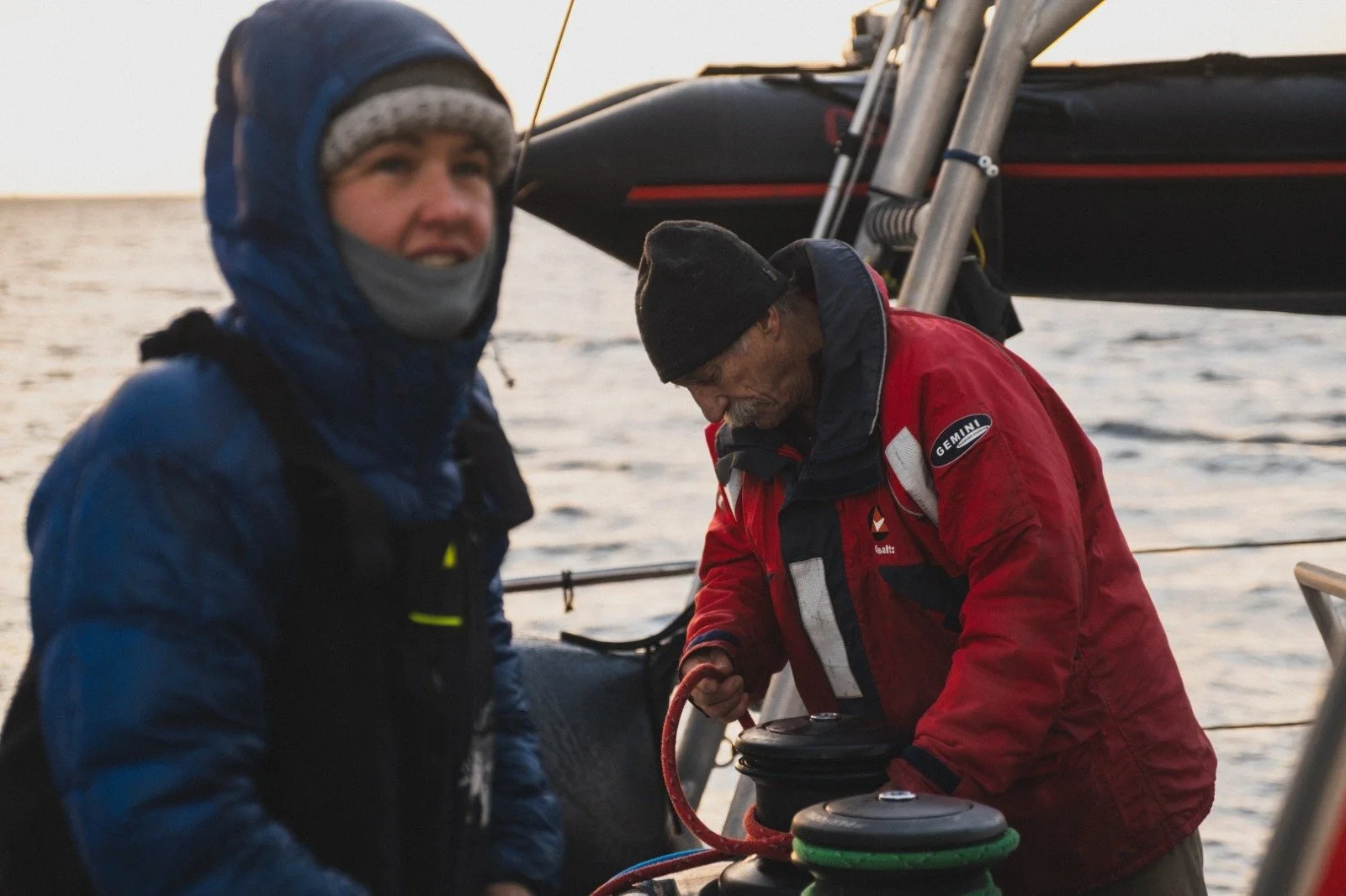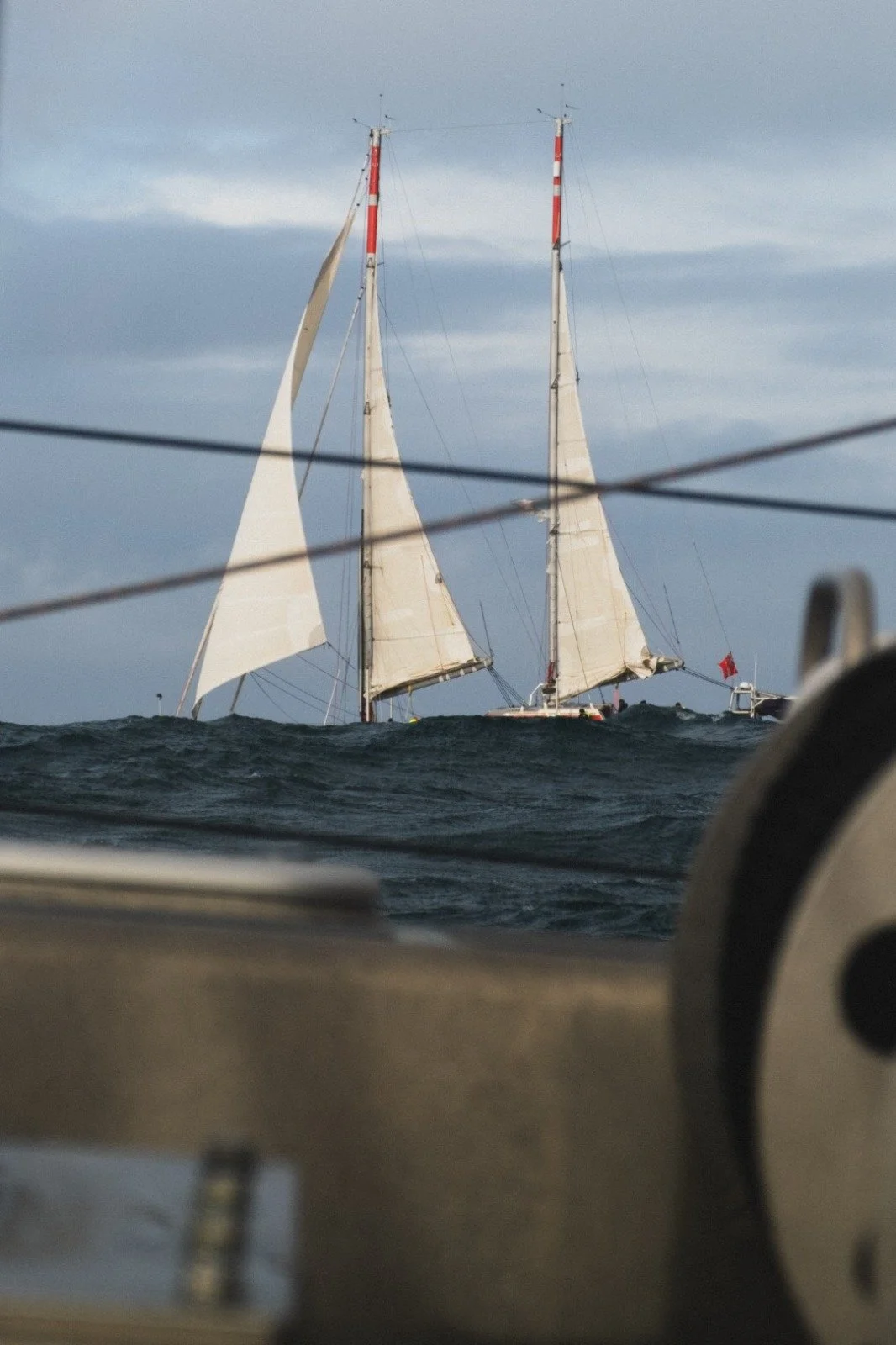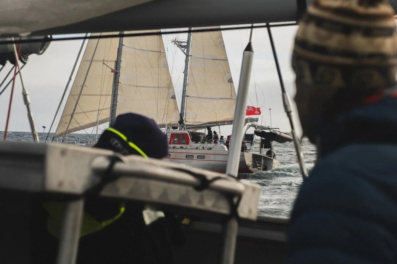 Monday night has caught us together. Amundsen and Vinson of Antarctica departed Port Stanley (Falkland Islands) this morning on a trip to take the ski-mountaineers to the snow line. With Skip Novak in command, the two vessels have lifted anchor and hoisted their sails next to each other, and now, after a whole day, Amundsen’s navigation lights are bright and only a few yards away from us. We are so close that Tor, Vinson’s skipper, is frequently checking if either of us should steer away from the other.