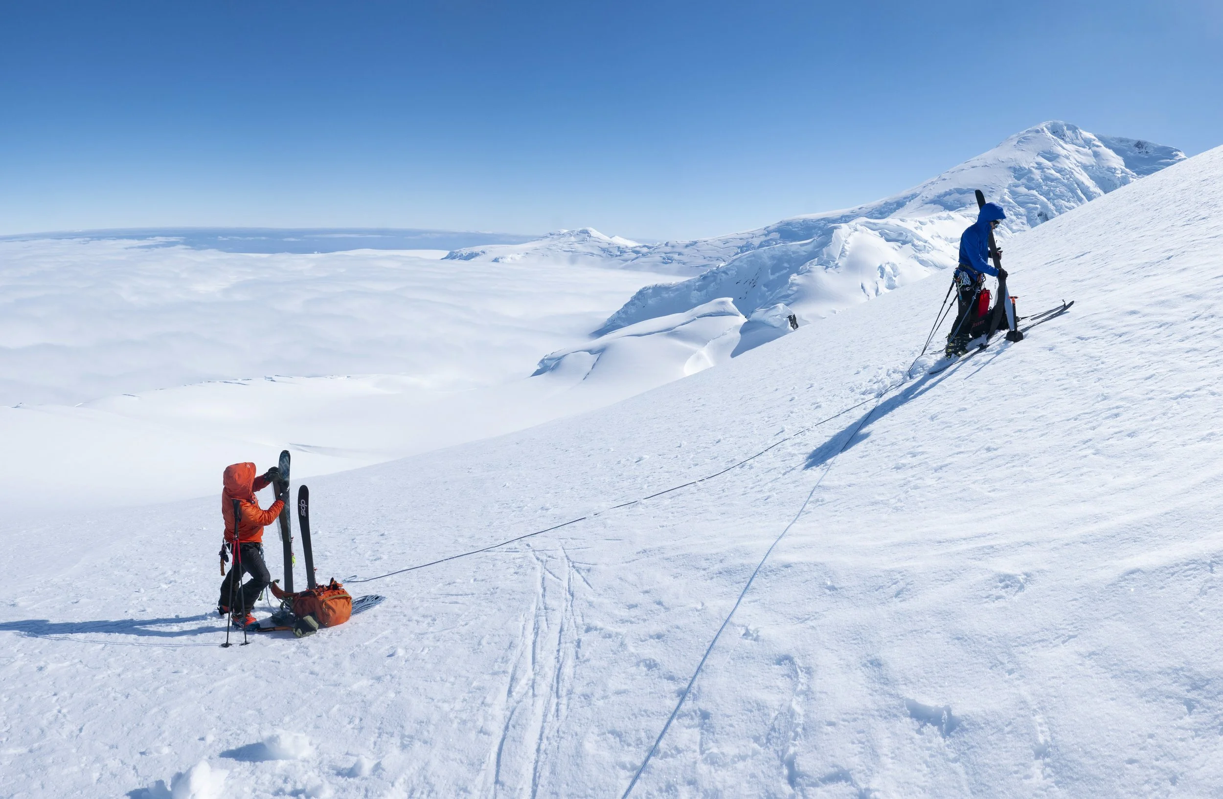 Lucas Krupp and Manuel Lugli descending Mt Rennie. Photo: Stephen Venables