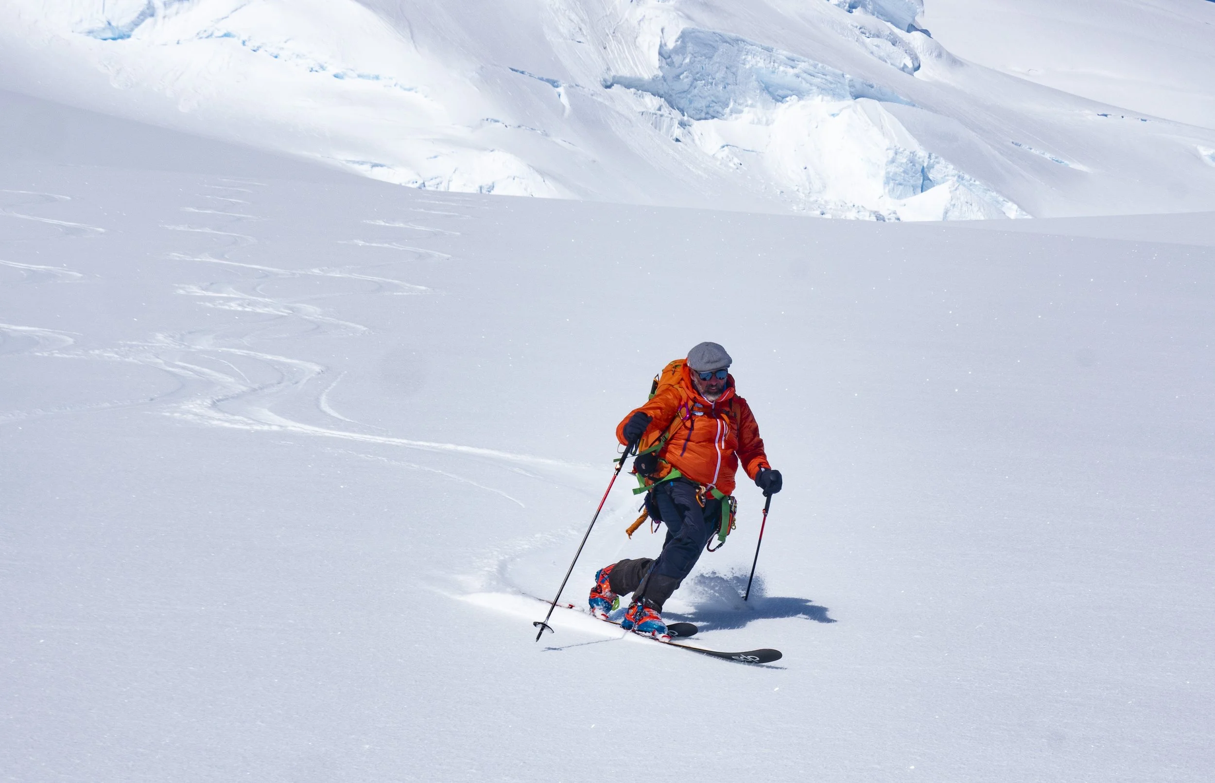 Manuel Lugli telemarking down Mt Rennie. Photo: Stephen Venables