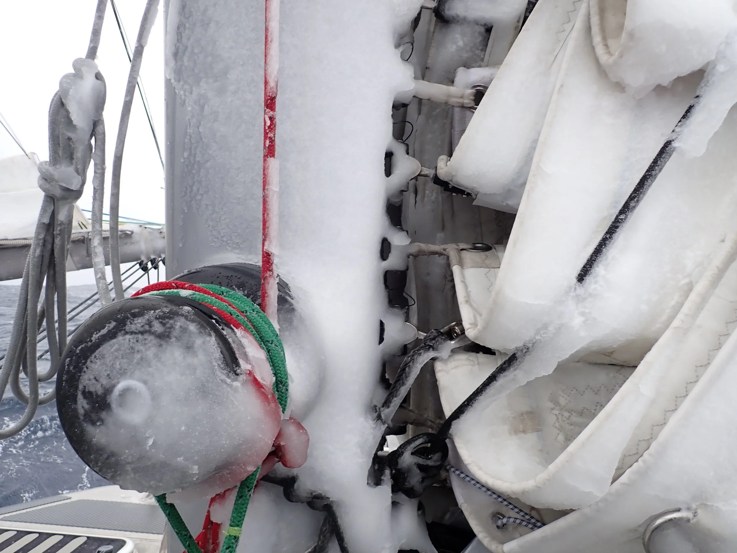 After testing everyone’s kit, all was well. Then came the long wait for a good slot for the traverse. We slowly made our way back up the north coast to Right Whale Bay, stopping along the way to go check out a king penguin colony in the Bay of Isles. What fantastic and amusing birds these penguins are. I could sit on the beach and watch them waddle around all day. We then spent a good few days in Right Whale Bay in a big blow. We saw 70 knots on the anemometer! Pretty exciting stuff. Probably not as exciting for the sleepless nights of the captain, Tor.