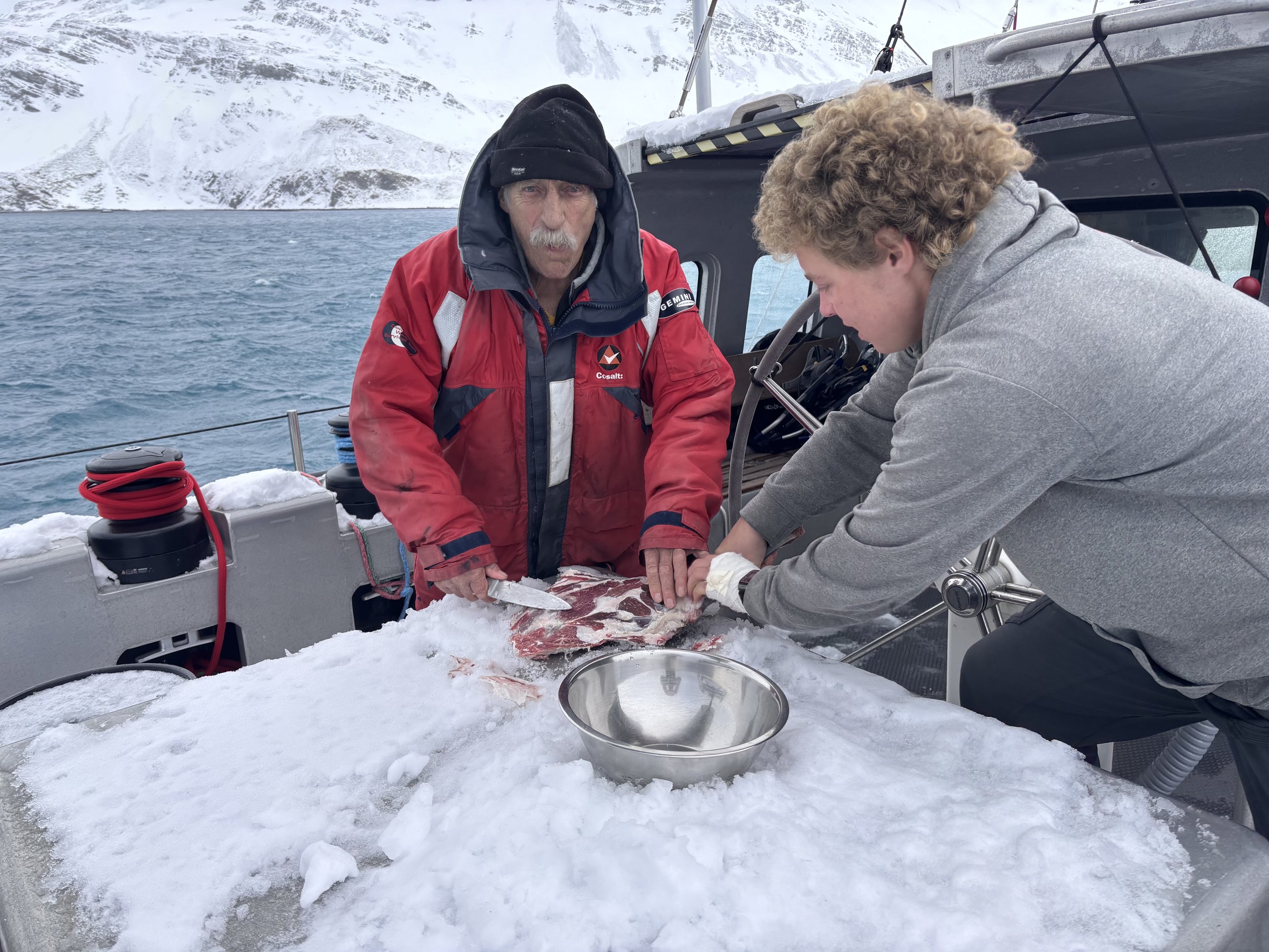 So how does an old sailor embarking on his 9th decade engage with such a trip as ours? Butchering and cooking the four mutton carcass halves that hung from our backstays was a good start. Jerome’s bread was produced almost daily in amongst other culinary delights with a French flair (I’m afraid we were lacking in cream . . ., sorry Jérôme), teaching my daughter Lara basic French and generally regaling both young and old with endless stories of his unique life. His many tips on anchorages and obscure passages between the islets along the coast were needless to say more than eye opening (“just trust him”, I told the crew).